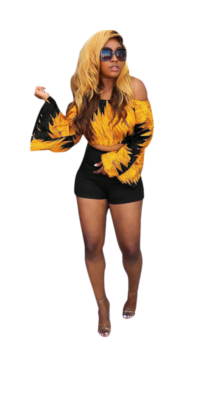 TAKE THIS ELEGANT LOOK AND STEP OUT WITH CONFIDENCE AS YOU SET YOUR OWN TEMPO IN THE WORLD OF FASHION BECAUSE YOU CAN'T HELP BUT TO FEEL YOURSELF IN THIS OFF-THE SHOULDER FLARE LONG-SLEEVE TYE-DYE TOP AND SHORTS SET!!