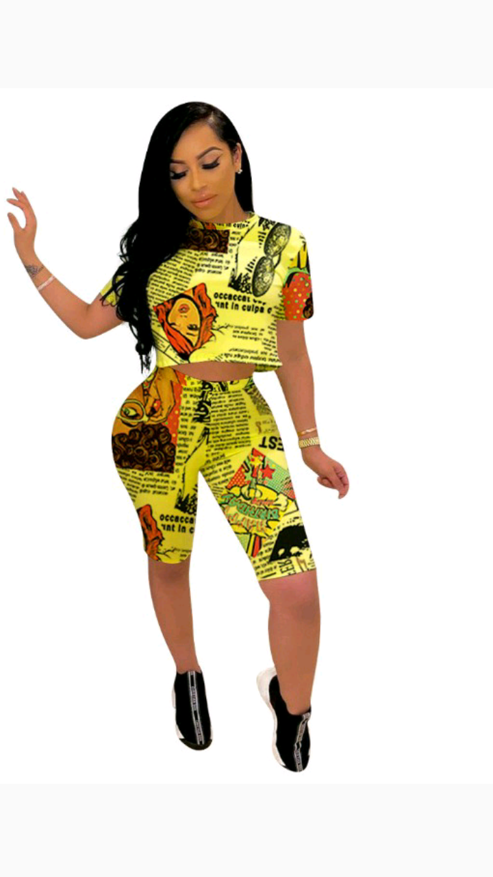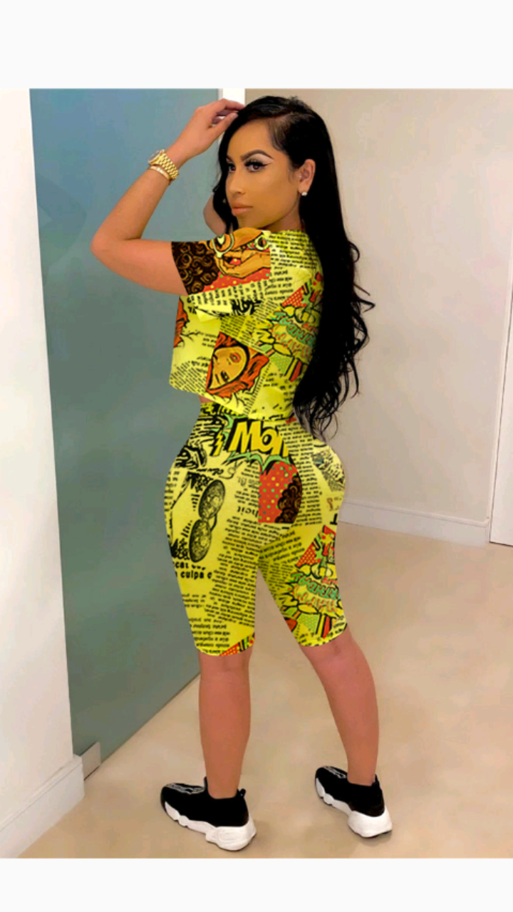 BE THE FRONT PAGE HEADLINE AND TRENDING TOPIC ON EVERYONE'S MIND IN THIS VERY NICE NEWSPAPER COMIC PRINT 2-PIECE SET WITH SHORTS TO MATCH THE TOP!!