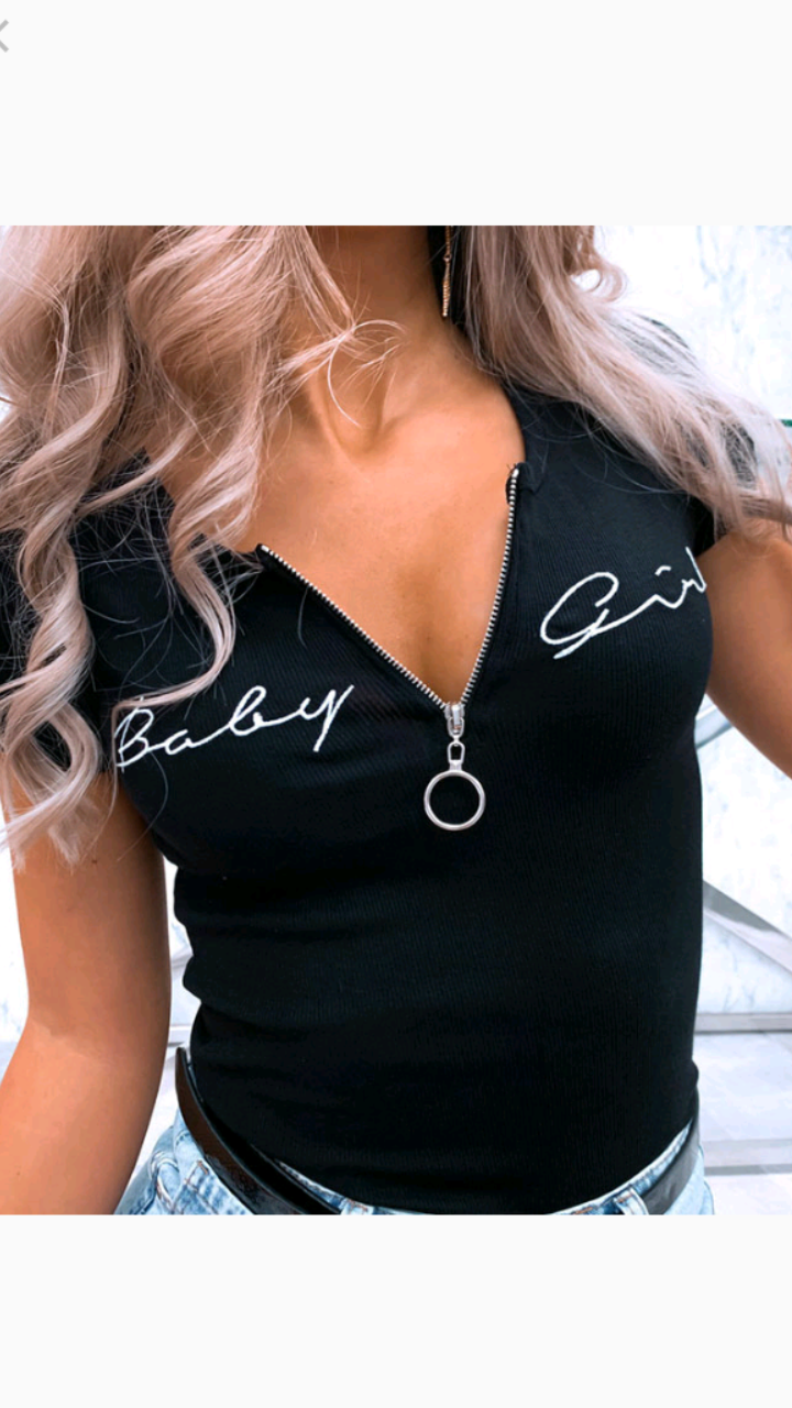 FOR THOSE WOMEN WHO WILL ALWAYS FOREVER BE DADDY'S BABY GIRL WEAR THIS LOVELY ROUND NECK ZIPPER LETTER EMBROIDERY SHORT SLEEVE TEE TOP WITH FULL CONFIDENCE!!