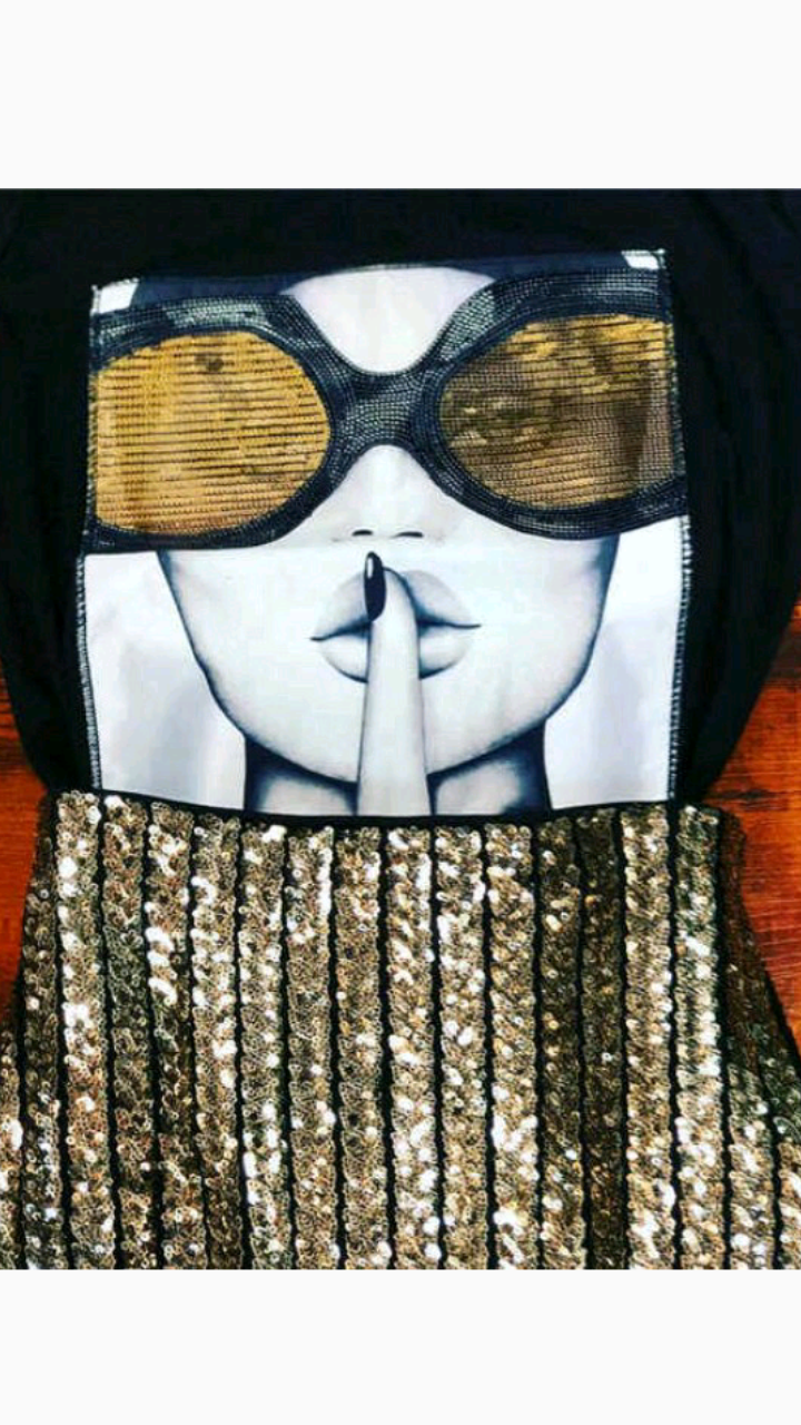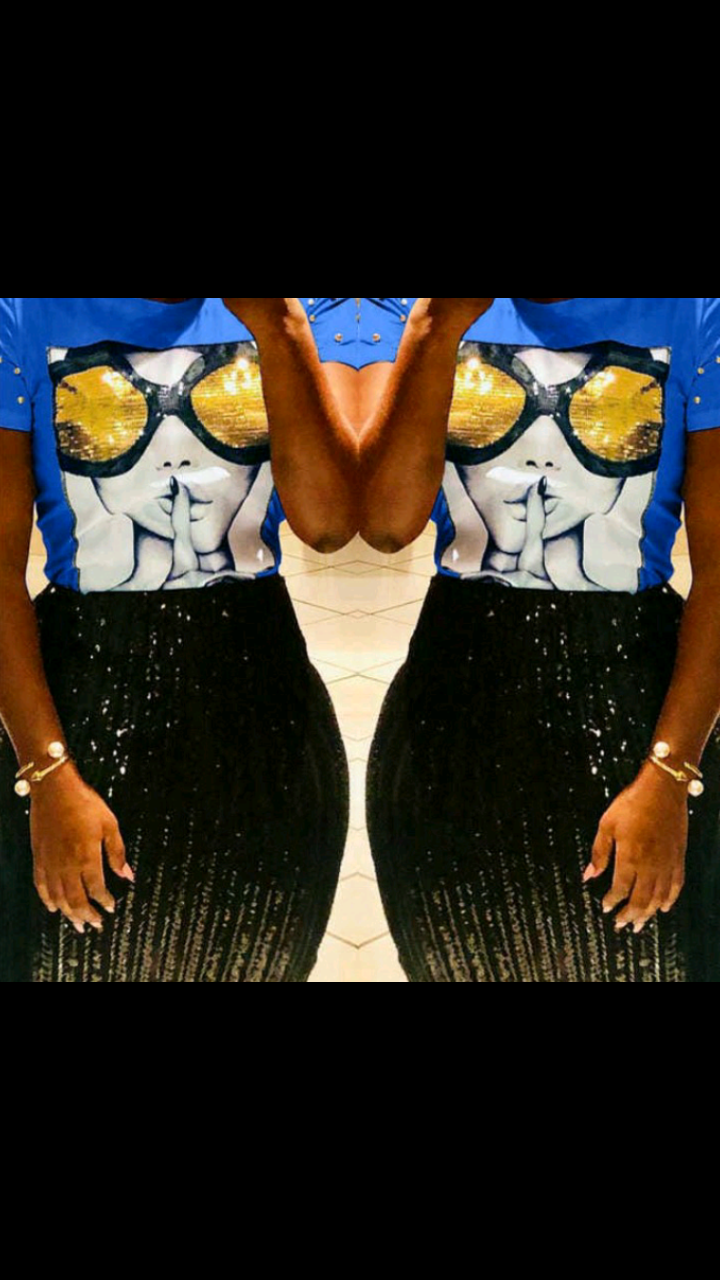 HAVE ALL EYES ON YOU IN THIS VERY NICE& LOVELY FASHION SEQUIN PATCHWORK PORTRAIT PRINTING SHORT SLEEVE TEE!!